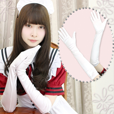 プリンセスドレス、メイド服、チャイナドレスなどのコスプレやワンピースにも合わせられるロング手袋(白)。サテン生地なので高級感もUP!きちんと手にフィットし、着け心地もとってもいい感じです!長さは肘上くらいになります。※水洗い可、塩素系漂白剤による漂白不可、ドライクリーニング可。※こちらの商品は在庫の状況によりお届けまでに4日〜7日程度かかる場合がございます。