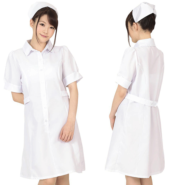 丸い襟と今風のパフスリーブがかわいい!本物のナース気分が味わえちゃうリアルなコスプレ衣装です!キュッと引き締まったウエストラインがセクシー。