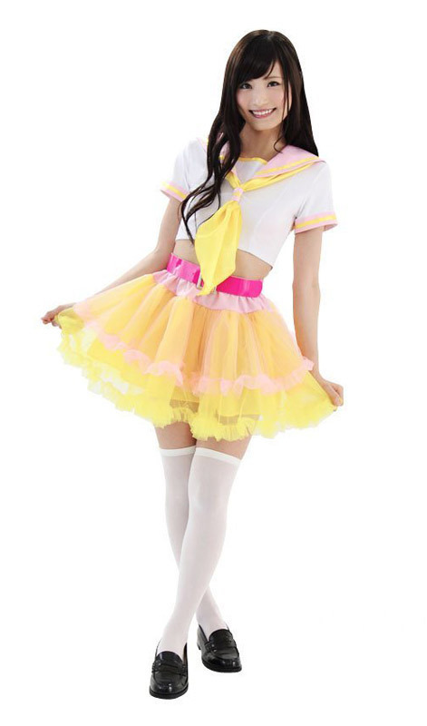 アイドル風コスチュームやセーラー服コスプレのお供に♪黄色×ピンクのキュートなカラフルパニエスカート。