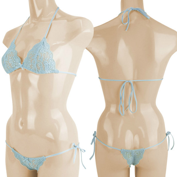ストレッチフラワー総レースブラ&ショーツ サックス