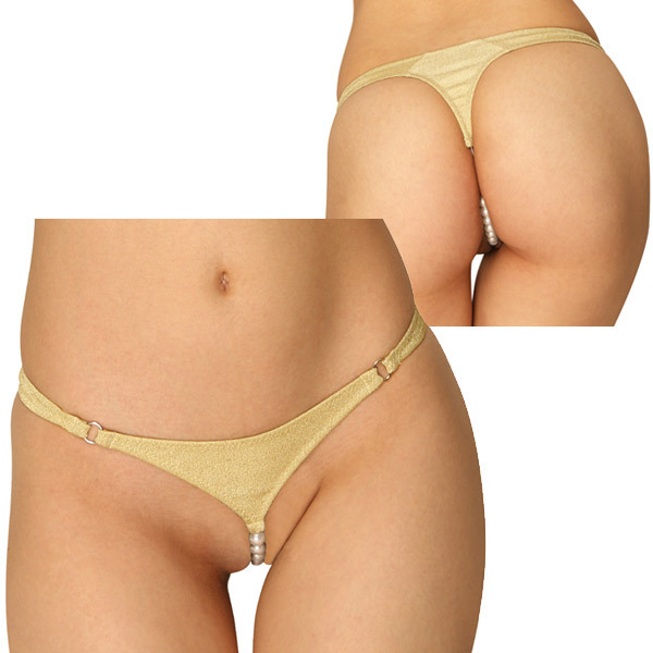 HOME > オープン ブラ・ショーツ(穴あき) > ラメ入り生地パール付きGスト ゴールド