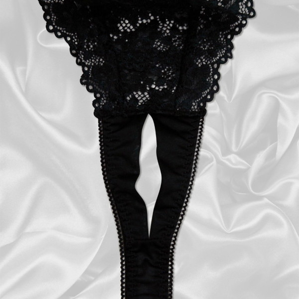 HOME > オープン ブラ・ショーツ(穴あき) > トリコット生地フラワーレース脇紐オープンTバック ブラック