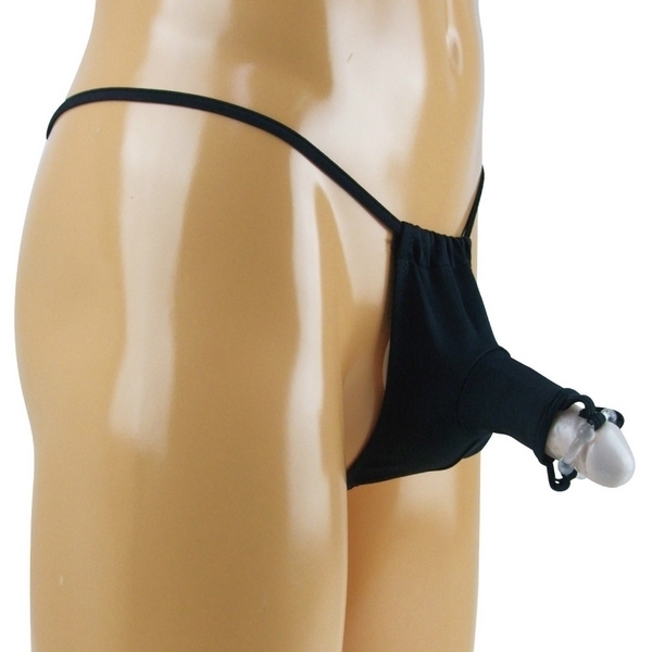 ●クールに魅せるブラックカラー●幅を自由に調節できるふんどし風●体にフィットするストレッチ生地●筒状のエレファント型ポケット●先端に透明のパワーリング付き●Tバックのストリング仕上げ●メンズ用Mサイズ・日本製。