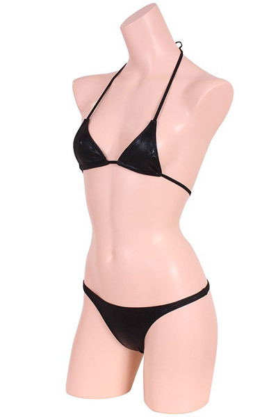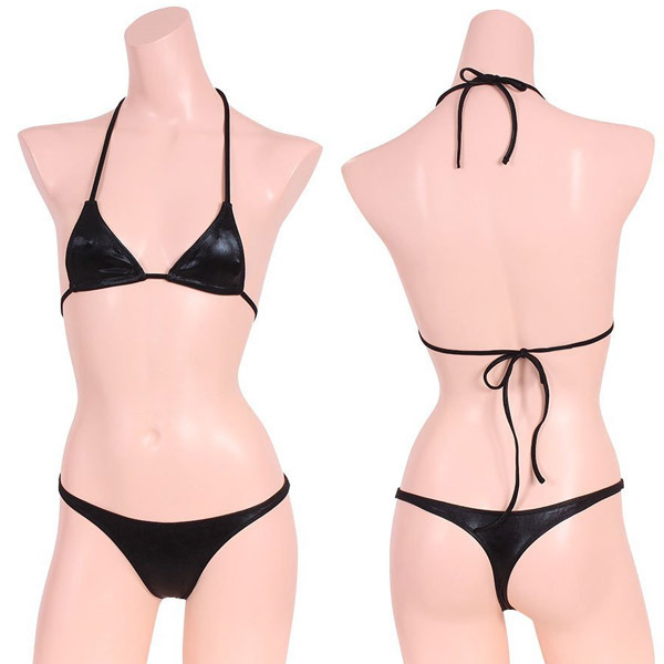 超セクシーなメタリックビキニで悩殺!光沢素材が魅力のブラ&ショーツセット「メタリック三角ビキニペア ブラック」。