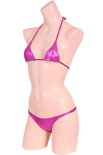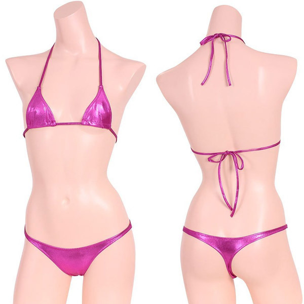 超セクシーなメタリックビキニで悩殺!光沢素材が魅力のブラ&ショーツセット「メタリック三角ビキニペア ローズ」。