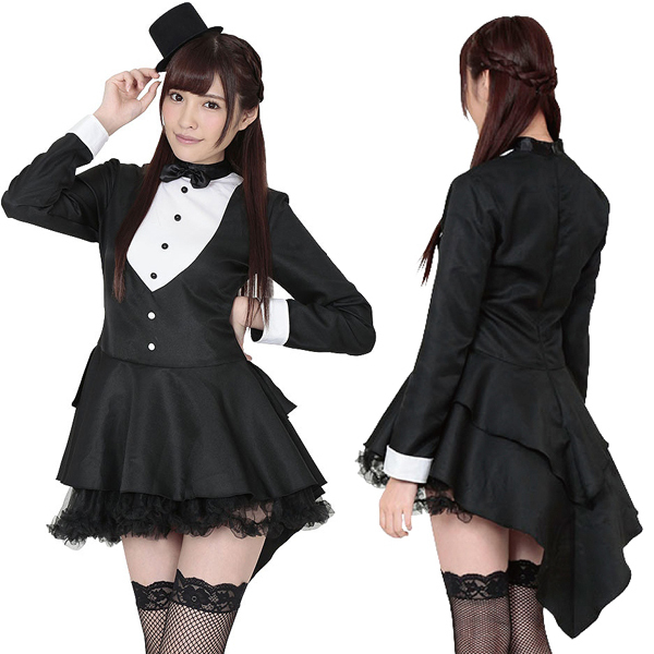 しかしそんなイメージを払拭!フリルと黒のチュールレースでボリュームを持たせて可愛くガーリーに仕上げました♪また、数あるタキシードのタイプから格式の高いテールコート(燕尾服)をチョイス!燕尾にフリル感をプラスすることで女性人気の高いフィッシュテール風にデザインしています。