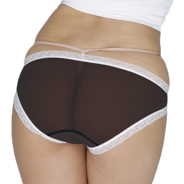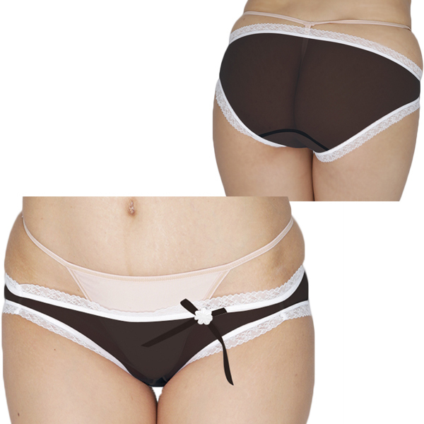 色気たっぷりなシースルー生地のフロントに、白の花飾りをつけたリボンをあしらいフェミニンに仕上げた一枚です♪