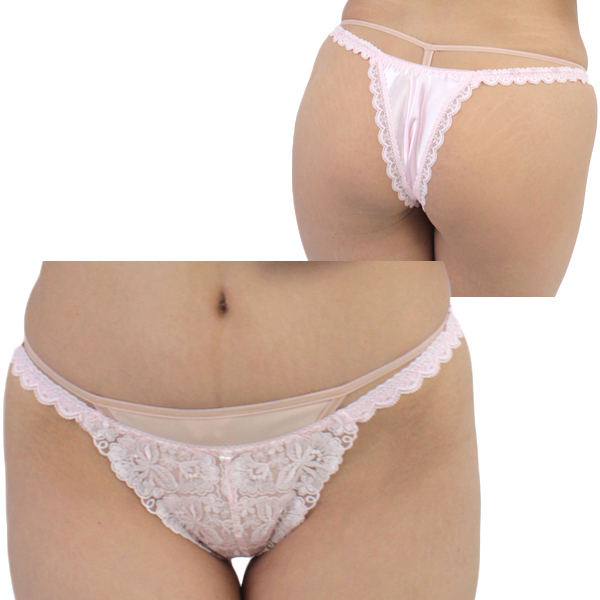 光沢ストレッチレース刺繍ハーフバック (ピンク)(ランジェリー)