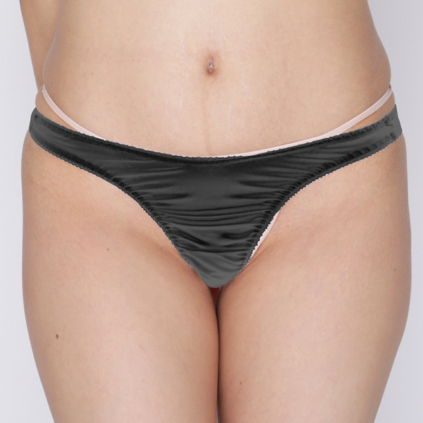 シンプル無地で普段使いにも最適!上品な光沢のあるストレッチ生地を使用した日本製のTバック(黒)。