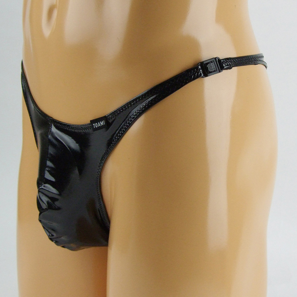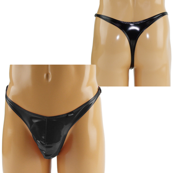 HOME > メンズ ショーツ・ビキニ > メンズ エナメル両サイドワンタッチバックル付きTバック ブラック
