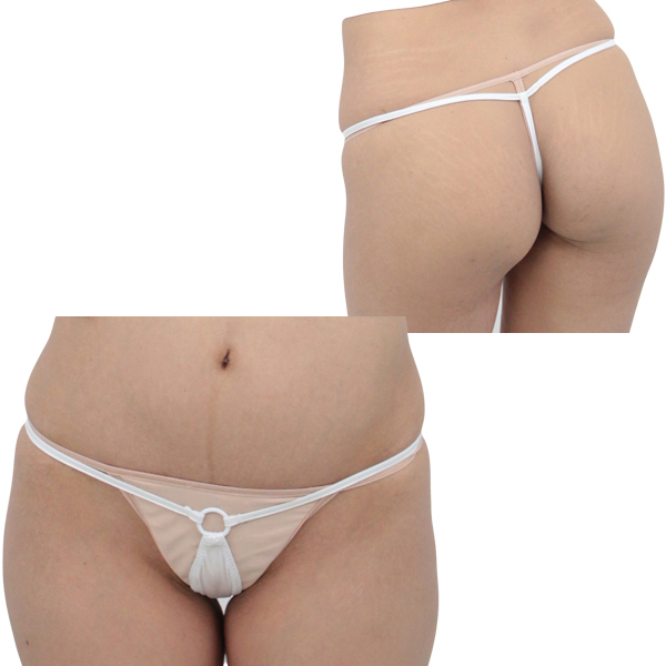 ゴム紐と股布を中央のリングでジョイントしたデザイン!生地面積が狭いため、ボトムス着用時にラインが気になるという場合にも最適です。