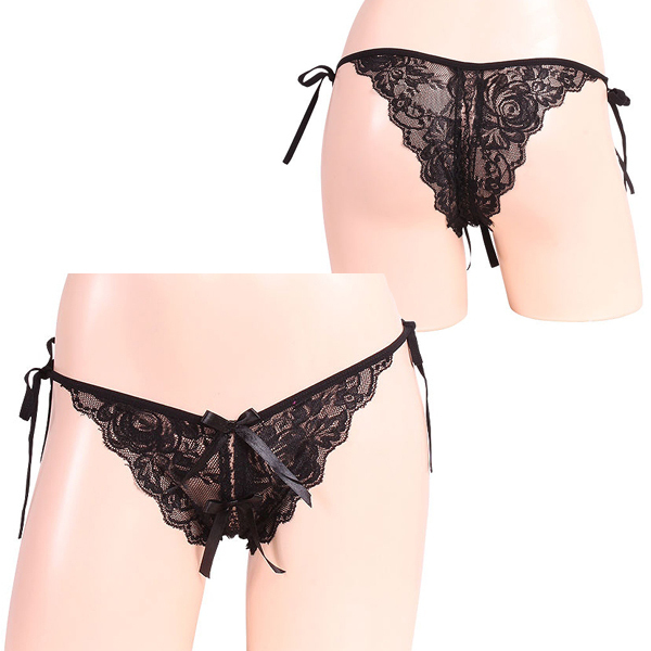 HOME > オープン ブラ・ショーツ(穴あき) > 女らしさ満開サイドリボンオープンショーツ ブラック