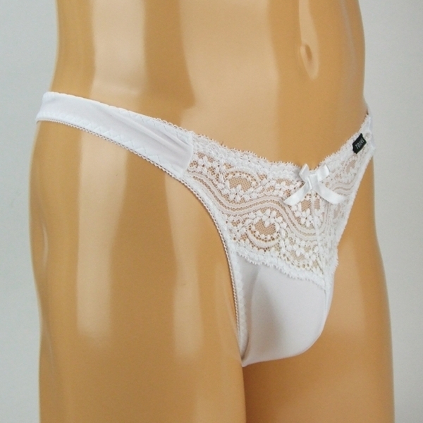 メンズ ストレッチ&レースコンビTバック (ホワイト)(ランジェリー)