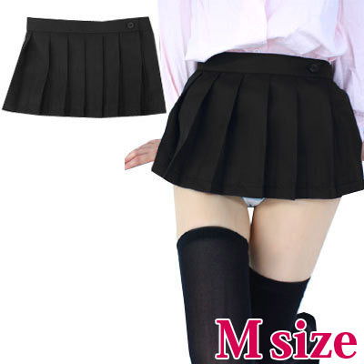 本格的な女子高生コスプレ!超ミニ丈の無地プリーツスカート(黒)。