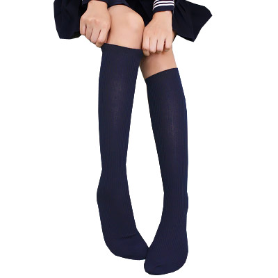 制服ソックスと言えばやっぱりコレ!綿リブ編みの紺ハイソックス。