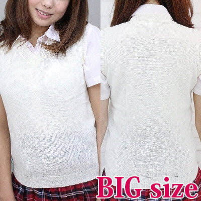 制服コスプレと相性抜群!オールシーズンOKな白無地ニットベスト単品(BIG)。