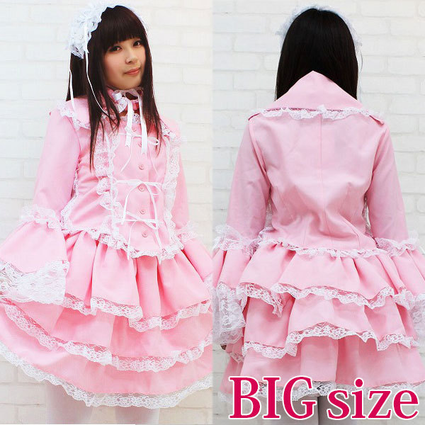 たっぷりのフリフリレースでボリューム感を持たせた、ピンクのチュールメイド服(BIG)。