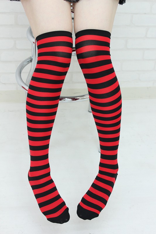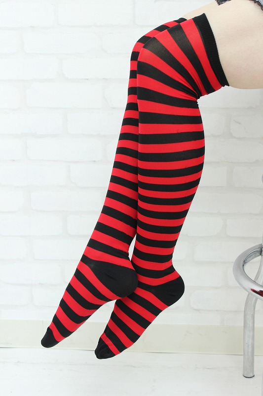 HOME > 小道具(ニーソックス・猫耳) > ニーハイボーダー レッド・ブラック 幅1cm