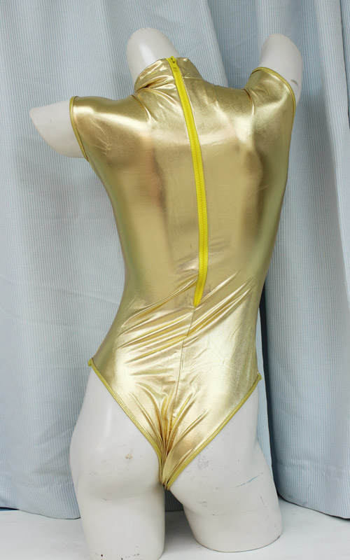カラダのラインが綺麗に出る素材と、ゴールドカラーが美しいハイネックのレオタード。