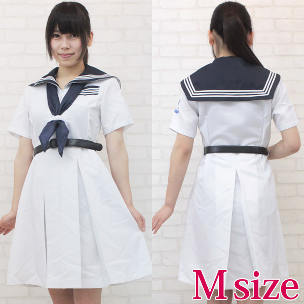 真っ白な半袖ワンピースが爽やか!誰もが憧れるお嬢様学校風のセーラー服コスプレ(M)。