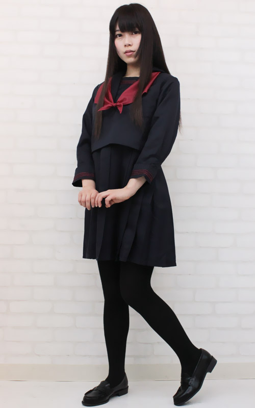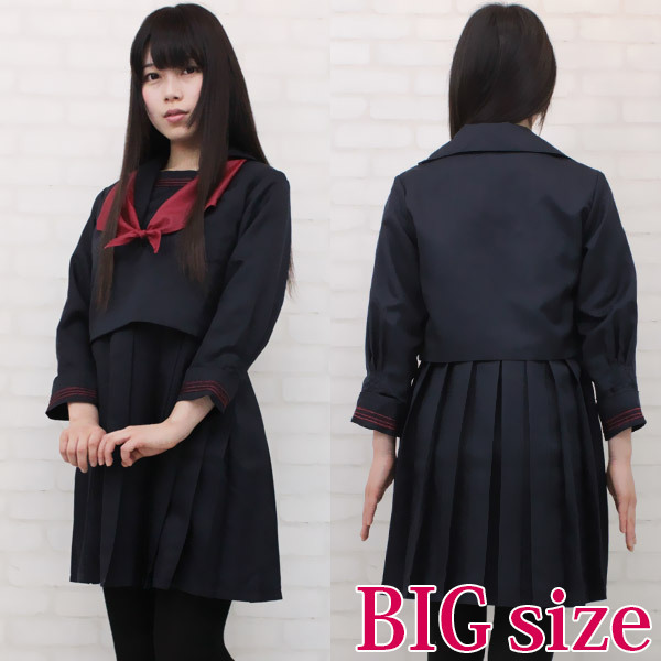 赤の3本ラインがキュート!珍しいジャンパースカートタイプのセーラー服(BIG)。
