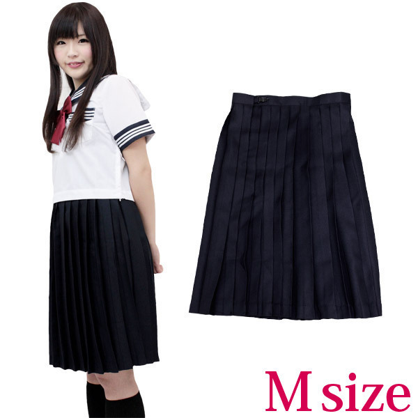 清楚な制服といえばやっぱりコレ!シンプルな無地の紺色プリーツスカート(M)。