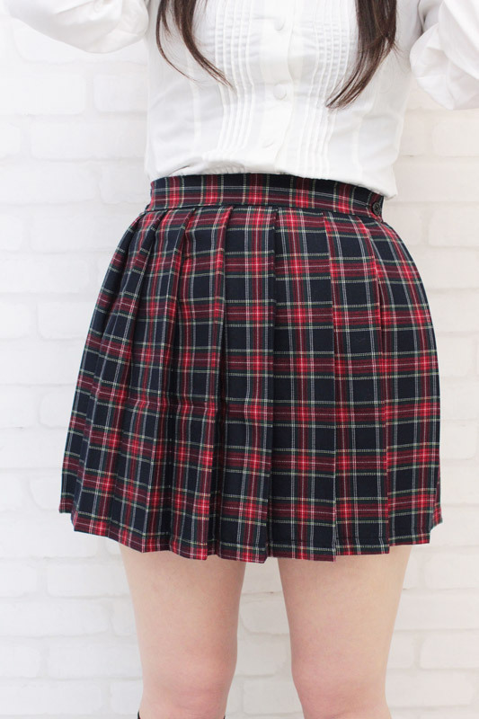 制服コスプレには欠かせない!紺×赤がキュートなチェック柄プリーツスカート(M)。
