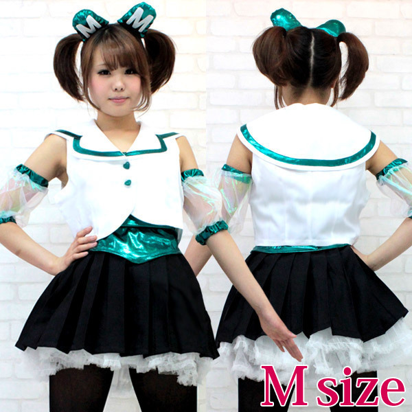 光沢のあるインナーに、短め丈の襟付きベストがお洒落!アームカバー、カチューシャにパニエまで付属した、完全なりきりアイドルコスプレセットです。