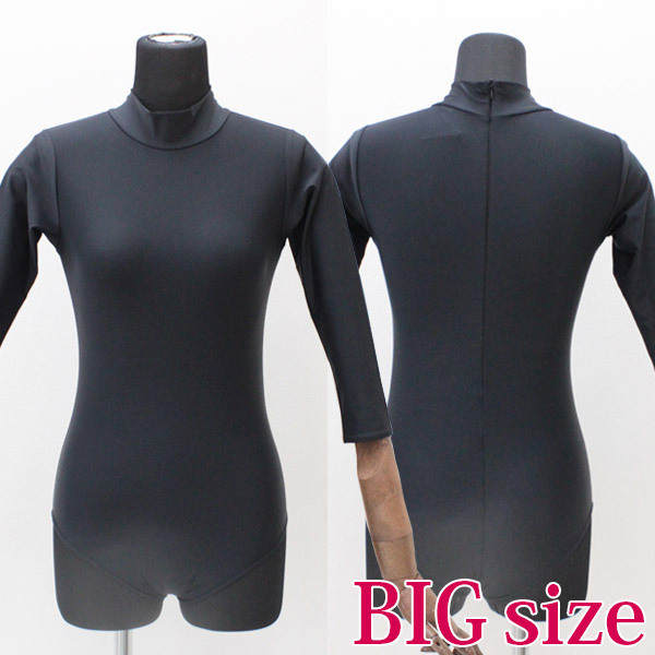 ブラックカラーのスタンダードな七部袖丈ハイネックレオタード単品(BIG)。