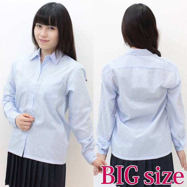 シンプルだけど、どこか可愛い!色んな着こなしが楽しめるサックスカラーの長袖シャツ(BIG)です。