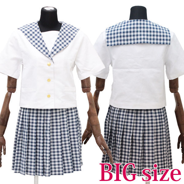 白と紺のギンガムチェック柄がラブリー!私立学園に通うお嬢様風のセーラー服。