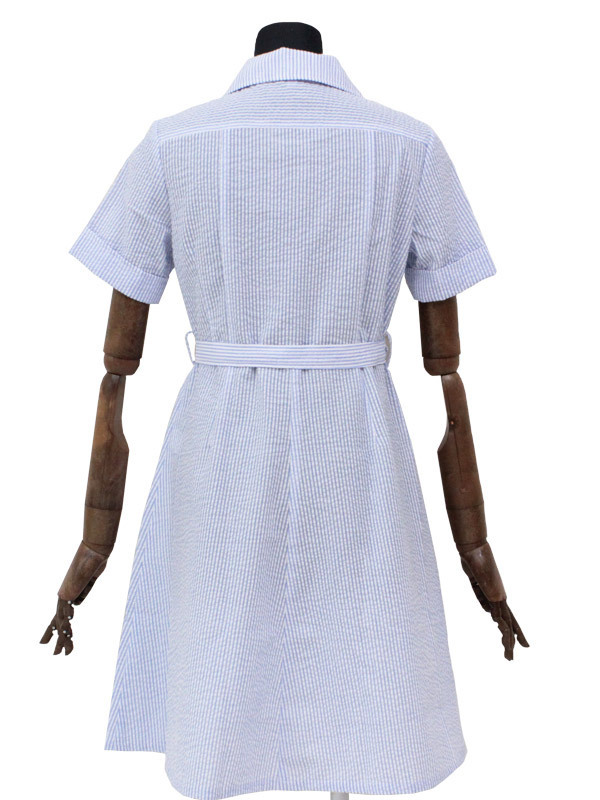 水色と白のストライプ柄がとっても涼しげな盛夏服タイプの制服コスプレ(M)。