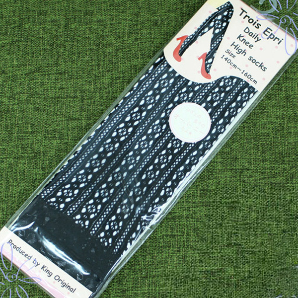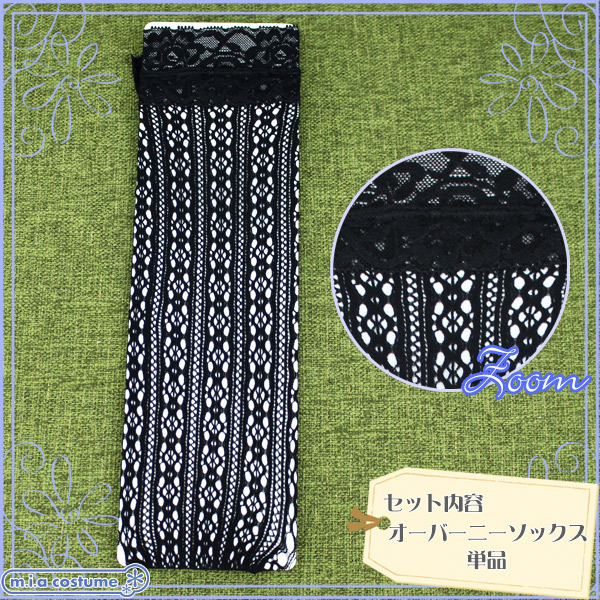 HOME > 小道具(ニーソックス・猫耳) > レース付き花柄メッシュニーハイソックス 黒 140〜160cm