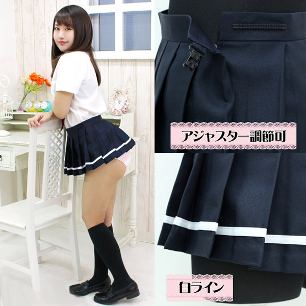 大人気の超ミニスカートシリーズにライン入りモデルの「超ミニ無地プリーツスカート単品 紺×白ライン BIG」が登場。