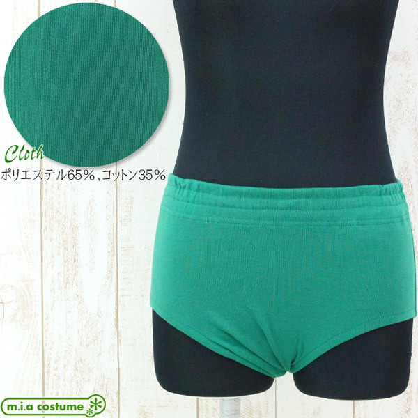 人気のブルマ単品に鮮やかなグリーンカラーが登場!無地のシンプルデザインで制服や体操着コスプレほか日常インナーとしての使用も可能。