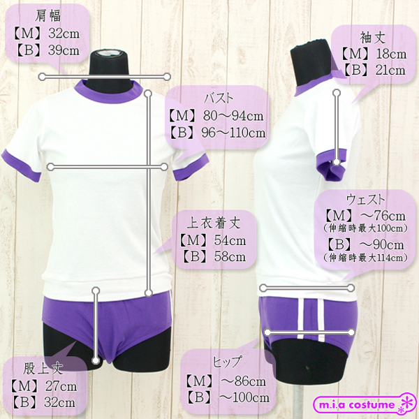 濃いめの紫カラーのブルマに本格的な二本ラインを施した可愛い体操着コスプレ。