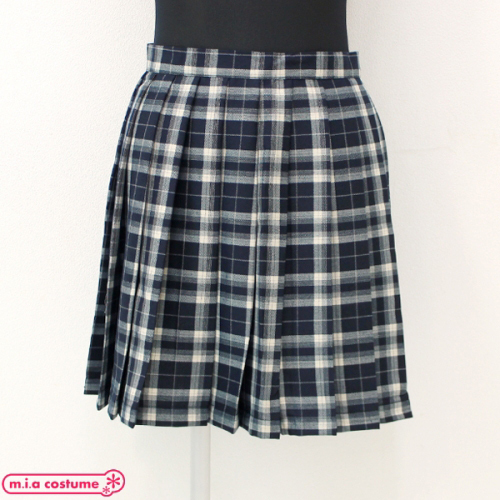 HOME > 小道具(ニーソックス・猫耳) > ポケット付きのチェック柄プリーツスカート単品 濃紺×クリーム Lサイズ