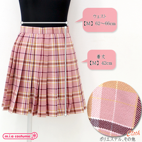 HOME > 小道具(ニーソックス・猫耳) > ポケット付きのチェック柄プリーツスカート単品 ピンク×キャメル Mサイズ