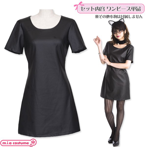 HOME > 小道具(ニーソックス・猫耳) > セレクトコス フェイクレザーワンピース ブラック